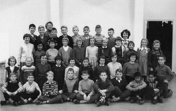 Achterste rij staand vlnr: .....? Hus, ???, Mevr. R. Klaasen (†) , Arjan de Boo*, Jaap Bruinsma*, Nico Keilman*, Floris van Lochem*, Harry .....?, ??? en Agaath .....? 3e rij staand vlnr: Marietje de Joode*, Yvonne Vacquier*, Myrna Volborth*, Marjolijn Wijnbergen*, ???, ???, ???, ???, José ?, Dinie Mielen († 31-5-2004) en Els Koster* 2e rij op de knieën: ???, ???, Marga Saul*, Marijke Heuser*, Lieke van Boven*, Ingrid van de Klaauw*, Marijke .....?, ???, ??? en Jan van Nieuwenhuize**. Voorste rij zittend vlnr: Wouter Mulder?, Wim Berserik, Rutger .....?, Peter Sips*, Roeland de Neve*, Leendert Spaans*, ???, Ernst Bachet* en André Busselaar*. *)adres- of mailgegevens bekend **)staat op www.schoolbank.nl (nog geen e-mail adres bij ons bekend) 28-5-2010.  |