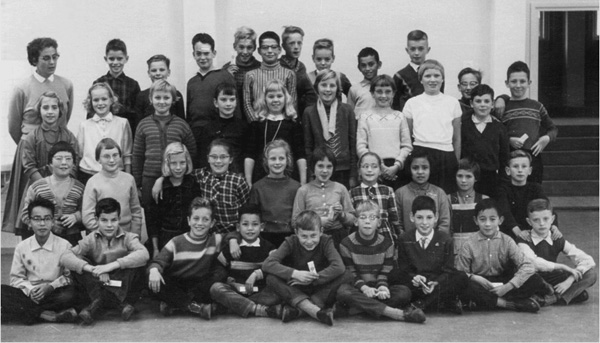 Achterste rij staand vlnr: Mevr. A. van Dam*, ???, Klaar Plugge**, Bart van Putten, Chris Rietdijk*, Krijn van den Bos*, ???, Michiel Bal*, Daan Münnich* en Eddy Beekink*. 3e rij staand vlnr: ???, (is dit het meisje, dat helaas hetzelfde schooljaar is overleden aan een ernstige ziekte?), Ria Vis, ???, ???, Marina Sonnenberg*, Riek Kouwen*, ???, ???, Hans Rose* (stapje naar achteren), Ernst Leslie-Miller* en Henk Tromp († 1994). 2e rij zittend vlnr: Ma(r)ry Muller, Cocky .....?, ???, ???, Joke Dijkgraaf*, Addy Eikelenboom*, Bertie Verbeek, ???, ??? en Rob Henstra*. Voorste rij vlnr: Harry Broos, Donovan Staakman, Hans du Pré*, Paul van der Poel*, Cock (nu Cor) Bregman*, Pim Bogaerds*, ???, Maurice Adriani (nu Nelwan)* en Harry Abma. *)adres- of mailgegevens bekend **)staat op www.schoolbank.nl (nog geen e-mail adres bij ons bekend) 30-8-2010.  |