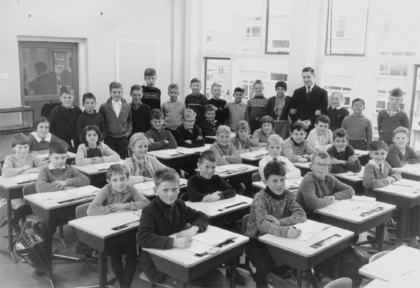 Staand vlnr: ???, Theo Rhijnsburger*, Peter Strikwerda, Hans van Dale*, Frans Langenbach**, Raymond Haze*, Koos Vos, Eric Vink*, Ron Barkey*, Henk Vermeulen, Evie Hajary, Dhr. F.J. Besselaar*, Ineke Vogel*, Archi Volborth* en Hans Oppelaar. Achterste rij raamkant vlnr: Ruud Hoenderdos*, Greet Kouwen († 21-2-2007), Henk van Santen/Zanten en Tom Hystee/Versteeg/Heysteeg?. 4e rij van achteren vlnr: Ronald Hilkhuijsen*, Joke Ton*, Piet Schaap, Ad Nieuwenhuis († 2005) en Dick de Bruin*. 3e rij van achteren vlnr: ???, Jannie Brouwer*, Aad den Dulk en Henk Vuijk*. 2e rij van achteren vlnr: Anneke Steffen*, Elly den Dulk*, Nelleke van Elk, Nico de Vries* en Ruud van den Hil**. Voorste rij vlnr: Hanneke Leidekker*, Jacob (Jaap) van den Brink, Marijke Weelinck en Hans Buser. *)adres- of mailgegevens bekend **)staat op www.schoolbank.nl (nog geen e-mail adres bij ons bekend) 23-5-2008.  |
