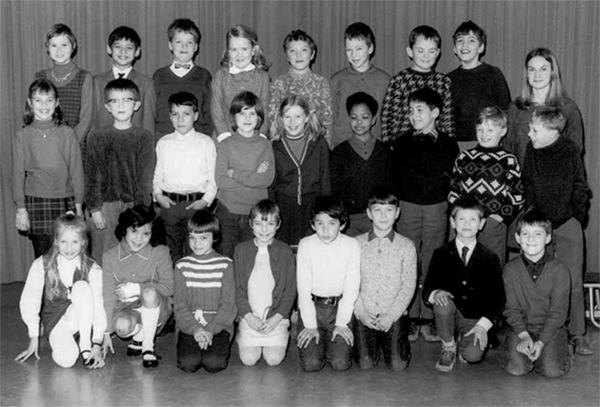 Achterste rij staand vlnr: Suzette Bruggeling*, Peter Pesch*, Jan Hindriks (nu Kist)*, Lida van Veen*, Jeannette Scheffer († 2-9-2006), Frans van de Wetering**, Frank Stoop*, Theo Lijntjes en