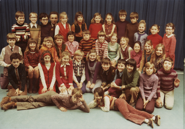 Achterste rij staand vlnr: Anton van Delden*, Robert Mallee, Ronald Huizinga, Dhr. B. Withaar*, Marie Louise Zieren*, Ellie Heemskerk*, Anita Luf, Sonja Stienstra*, Erik Smit*, Hans Zaal*, Anja van Velzen*, Willy Koperberg* en Marja Vogelaar. Middelste rij zittend vlnr: Richard de Bruin, Karin Fransen*, Rolf Sips*, Rob Hols*, Robbie Spaans*, Jeroen .....?, Fred de Wit*, Marie Louise van der Zwan*, Yolanda Lubout*, Annelies Coenraad*, Laura van Geest* en Laura Braun*. Voorste rij zittend met handen op de knieën vlnr: Victor Nitzschke*, Yvonne van de Hoeven, Jolanda Schermer*, Inge Wolsheimer, Hetty ter Meulen († 8-1-2006), Tobias van den Boom*, Paul Hederik*, Bernard van der Lee*, Fred Harteveld* en Erik Roet*. Liggend vlnr: Arjen Muurling* en Sandra Oberweis*. *)adres- of mailgegevens bekend **)staat op www.schoolbank.nl (nog geen e-mail adres bij ons bekend) 23-5-2008.  |