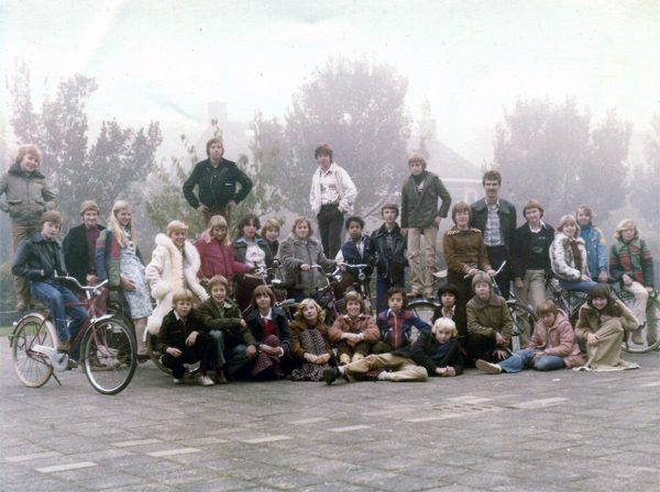 Hoog op de bagagedragers vlnr: Rob van Vleuten (†), John Vos*, Dimitri Ziogas en Ton Slootweg*. Staand vlnr: Herman Denkers*, Jacqueline Wijnbergen, Renate van der Hout*, Margriet de Vreeden, Cora Greeven*, Channa Oudshoorn**, Ed van Zanten*, Wilma Kleijn, Earl Caprino*, Marcel Vingerling*, Michel Uittenbroek*, Dhr. A. Nieuwenhuyzen*, Anneke Roest*, Sandra de Vreugd*, Irma Schüller en Ingrid Schön*. Voorste rij zittend vlnr: Edwin Vink, Hans Borremans, Anja Vogelaar**, Carina Niemeijer*, Patricia Grasmeijer*, Wouter Kraus*, Robert van Maanen (liggend), Sharon Oberweis*, Dolf Thierry, Marjon Bruls* en Diane van de Linden. *)adres- of mailgegevens bekend **)staat op www.schoolbank.nl (nog geen e-mail adres bij ons bekend). 12-6-2010.  |